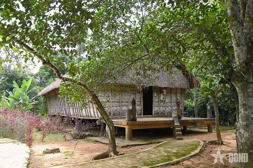Toàn cảnh khoảng sân vườn và nhà sàn của dân tộc Ba Na tại Làng Văn hóa - Du lịch các dân tộc Việt Nam. Ảnh: Trâm Anh