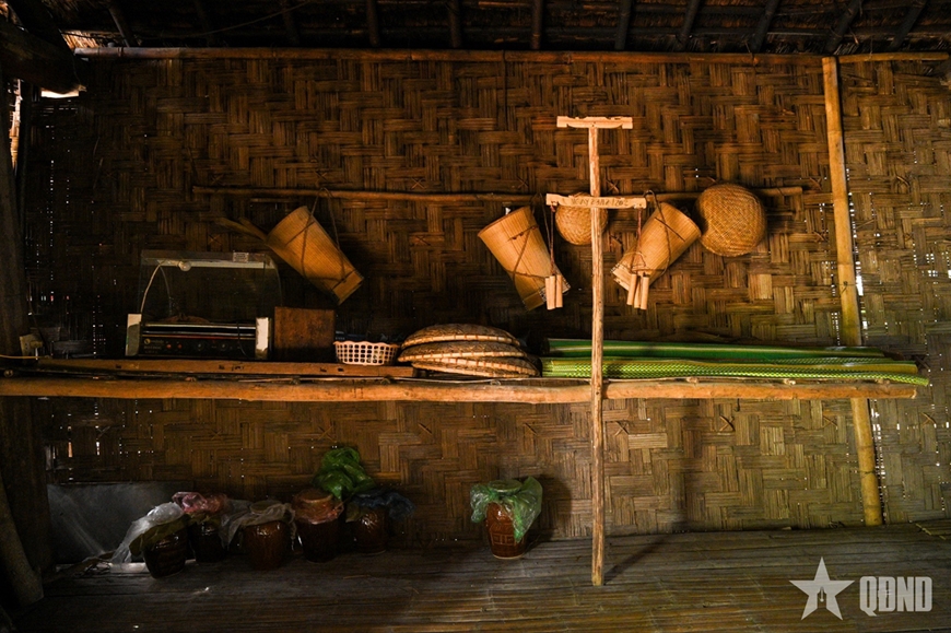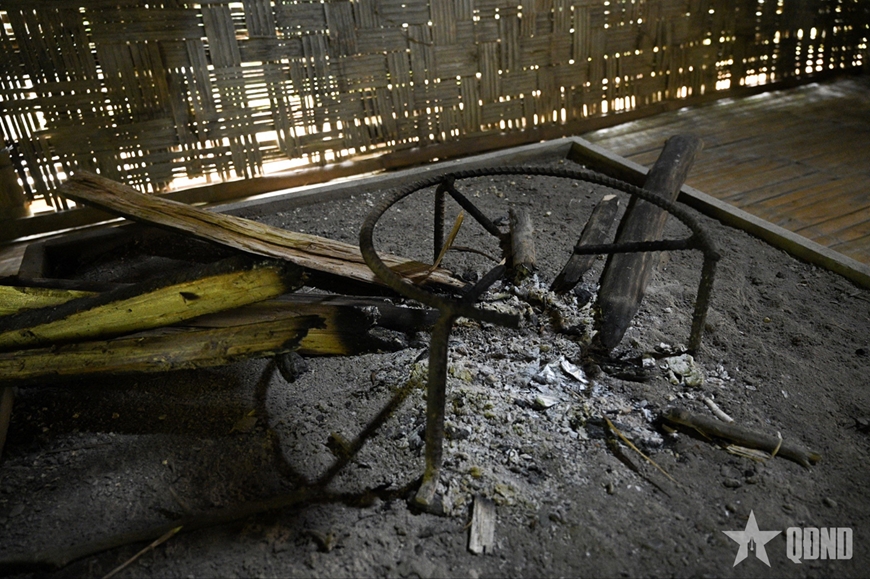 | Một phần góc bếp sinh hoạt của dân tộc Ba Na. Hiện tại không gian văn hóa tại đây đang được một nhóm đại diện là người dân tộc Ba Na sinh sống, làm việc và giới thiệu văn hóa của dân tộc mình đến với du khách tham quan. Ảnh: Trâm Anh |