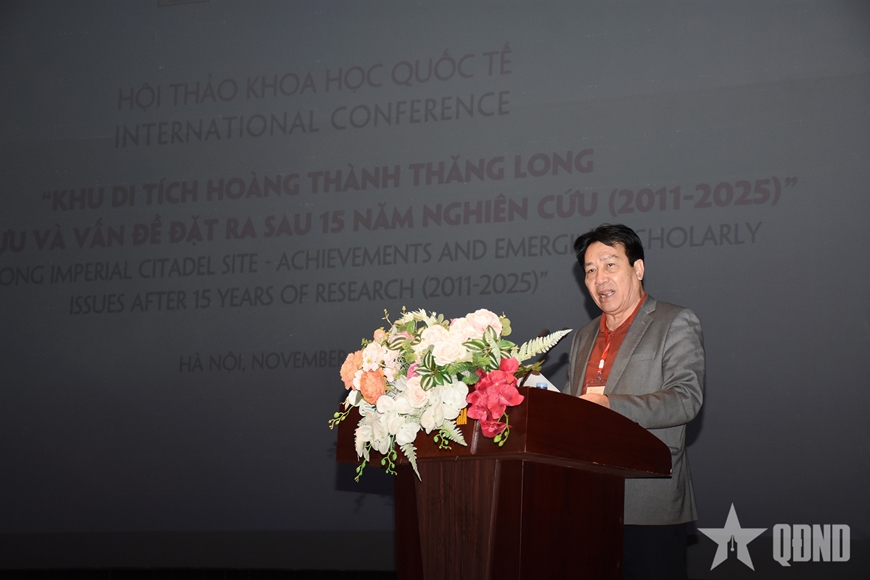 Phát biểu đề dẫn, PGS, TS Bùi Minh Trí, nguyên Viện trưởng Viện Nghiên cứu kinh thành, Chủ nhiệm dự án nghiên cứu Khu di tích Hoàng thành Thăng Long nhấn mạnh, 15 năm qua, các chuyên gia của Viện Nghiên cứu kinh thành (nay thuộc Viện Khảo cổ học) đã đạt được nhiều thành tựu nổi bật và quan trọng về nghiên cứu Khu di tích Hoàng thành Thăng Long.