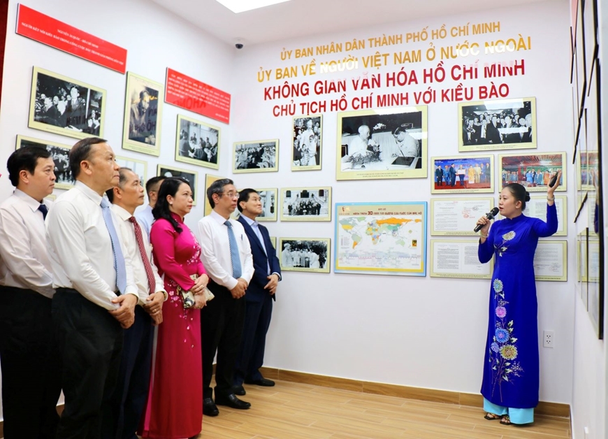 | Lãnh đạo TP Hồ Chí Minh cùng kiều bào tham quan “Không gian văn hóa Hồ Chí Minh-Điểm hẹn kiều bào”. |