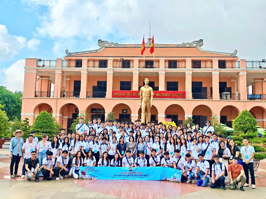 | Thanh niên kiều bào tham gia Chương trình Trại hè Việt Nam với chủ đề “Cùng nhau viết tiếp câu chuyện hòa bình” tại Bến Nhà Rồng. |