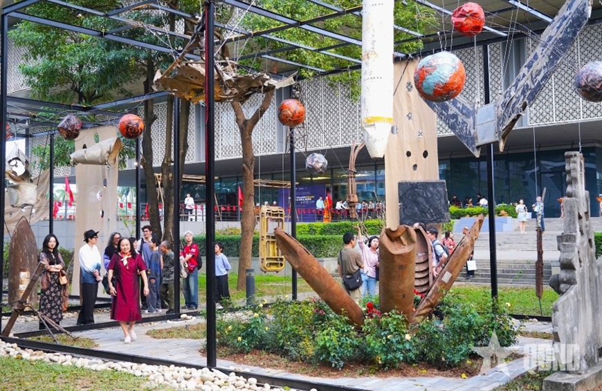 Công chúng tham quan không gian Trưng bày sắp đặt nghệ thuật đương đại "Chiến tranh và hòa bình".