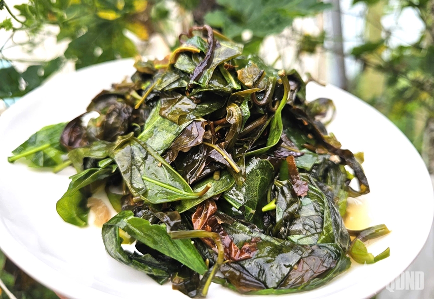 Lá bép được nấu đơn giản nhưng mang hương vị đặc biệt, vẫn giữ được sắc xanh tươi tự nhiên của lá.