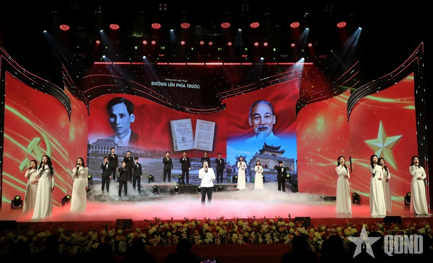 | Thông qua các tiết mục nghệ thuật tái hiện sự ra đời của Đảng Cộng sản Việt Nam, khẳng định vai trò lãnh đạo của Đảng trong sự nghiệp đấu tranh giành độc lập dân tộc. |