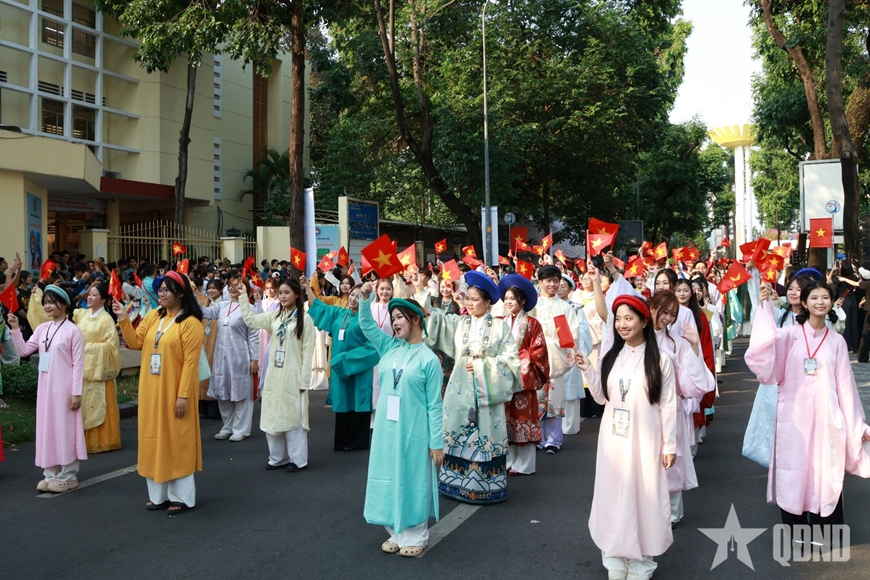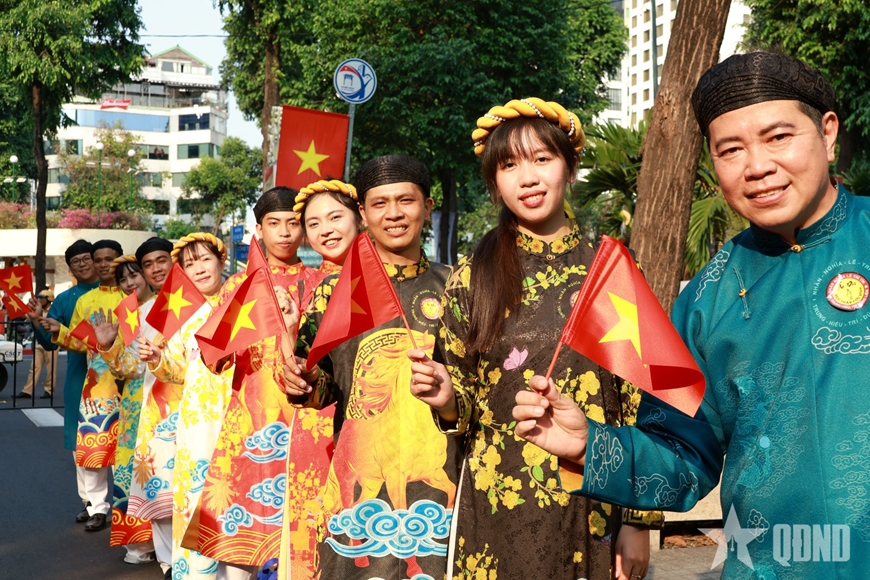 Trong những bộ trang phục truyền thống như áo giao lĩnh, nhật bình, áo tấc…, đoàn diễu hành xuất phát từ khu vực Hồ Con Rùa, đi qua các tuyến phố trung tâm và kết thúc tại Công viên Nhà thi đấu Phan Đình Phùng. Màn trình diễn flashmob trên nền ca khúc “Nhà Tôi Có Treo Một Lá Cờ” đã tạo nên không khí xúc động, thể hiện tinh thần tự hào dân tộc mạnh mẽ.