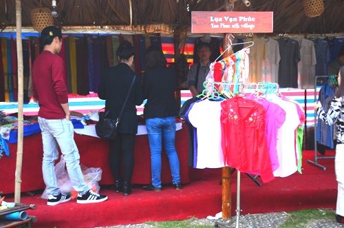 Nằm ven sông Nhuệ, làng Lụa Vạn Phúc, Hà Đông nổi tiếng với tuổi nghề hơn 1.000 năm, với các sản phẩm dệt cổ truyền như: The, sa, lụa, … chất liệu mượt mà, hoa văn, mẫu mã phong phú, toát lên vẻ sang trọng cho người mặc. Lụa Vạn Phúc bền đẹp, khoác tấm áo lên người sẽ thấy mềm mại và nhẹ nhàng. Trải qua bao thăng trầm đổi thay, làng Vạn Phúc vẫn giữ được nguyên vẹn những giá trị cổ truyền trên từng vân lụa, thớ vải, lụa Vạn Phúc vẫn luôn giữ được những thủ pháp nghệ thuật truyền thống. Những sản phẩm lụa truyền thống giới thiệu tại Làng Văn hóa - Du lịch các dân tộc Việt Nam lần này đã được nhiều du khách quốc tế yêu thích.