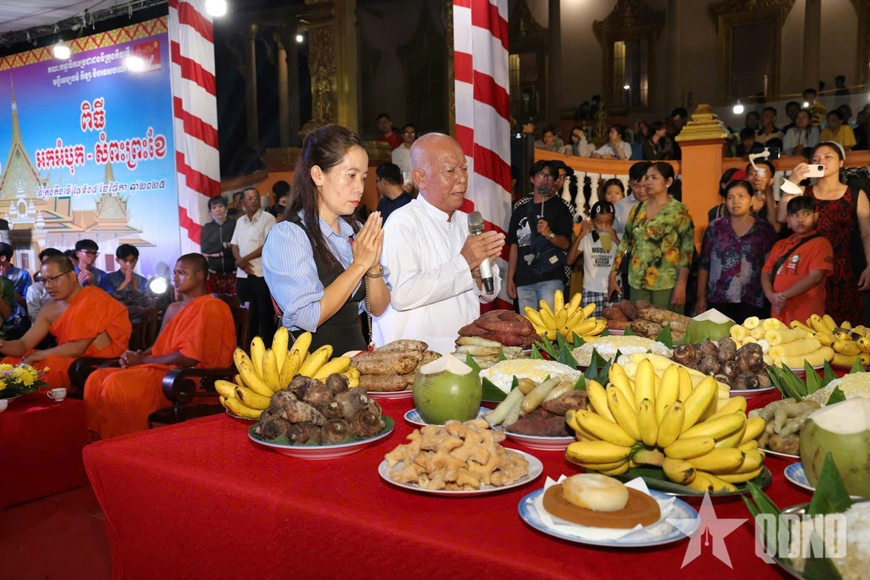 Cách sắp đặt mâm lễ cũng mang nhiều tầng ý nghĩa: Hai cây trụ cổng tượng trưng cho “vành đai vũ trụ”, bàn cúng là “Trái đất”, hai cây mía biểu trưng cho sự sinh sôi, 3 ngọn nến tượng trưng cho 3 mùa trong năm theo quan niệm của người Khmer (nắng, mát, mưa). Mỗi chi tiết nhỏ đều thể hiện tri thức dân gian và thế giới quan của người Khmer, sống hài hòa, tôn kính thiên nhiên và biết ơn lao động.
