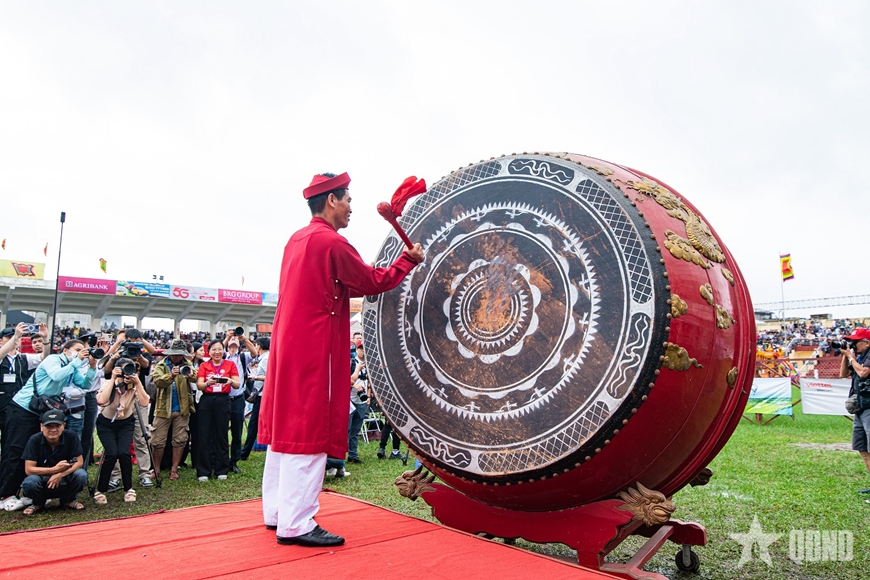 Đánh trống khai hội. |