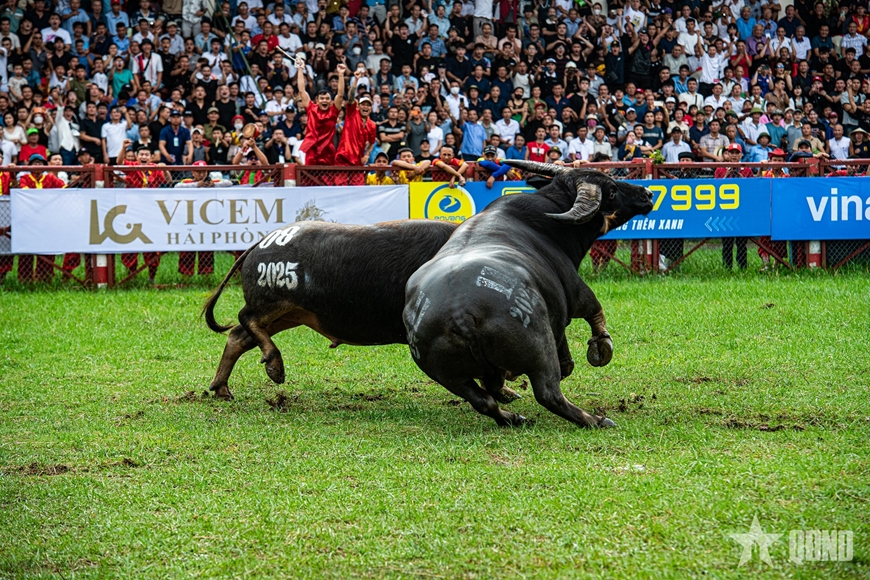 Lễ hội chọi trâu Đồ Sơn 2025 diễn ra trong không khí tưng bừng, náo nhiệt, hàng vạn người dân và du khách đã đổ về sân vận động trung tâm Đồ Sơn, Hải Phòng để chứng kiến Vòng chung kết Lễ hội Chọi trâu truyền thống. Sau một ngày tranh tài quyết liệt với 15 kháp đấu đầy kịch tính, "ông trâu" mang số 06 của chủ trâu Đinh Đình Phú đã xuất sắc giành ngôi vô địch năm 2025, mang về giải thưởng 100 triệu đồng.