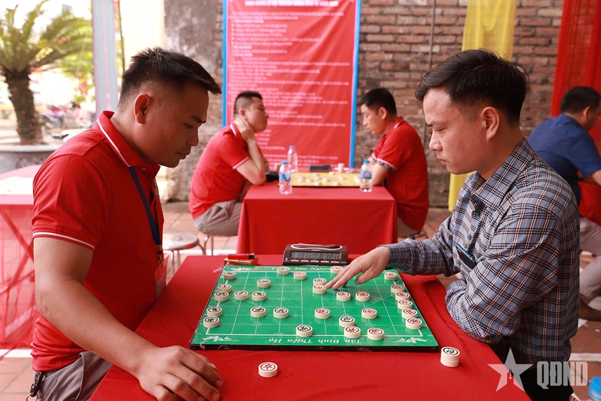 Thi đấu cờ tướng diễn ra tại sân đình trong khuôn khổ lễ hội.