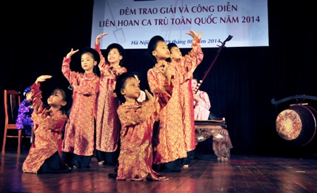 Lớp ca nương trẻ sẽ là lực lượng kết tục và phát huy di sản ca trù (Trong ảnh, các ca nương nhí của CLB ca trù Thăng Long tại liên hoan).