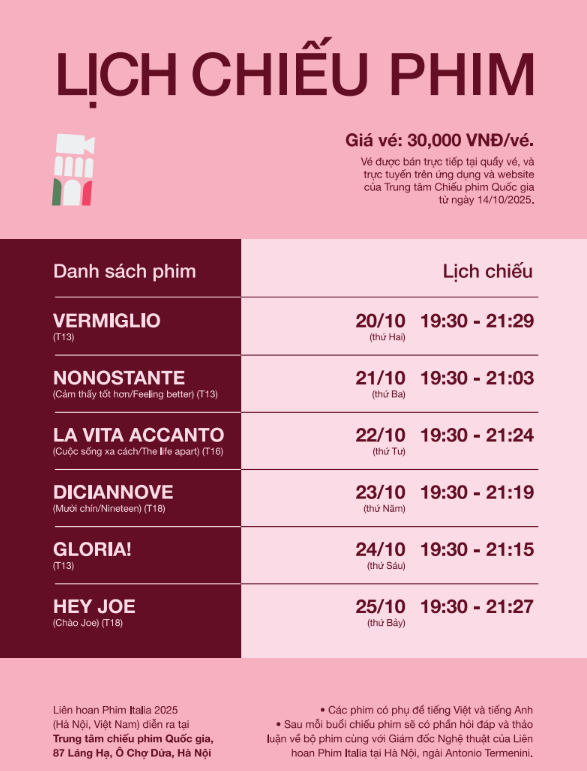 Lịch chiếu phim trong Liên hoan phim Italia 2025. |
