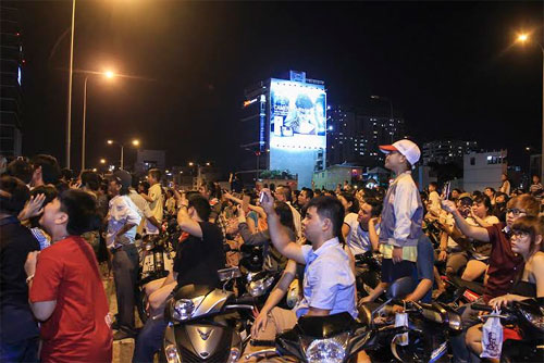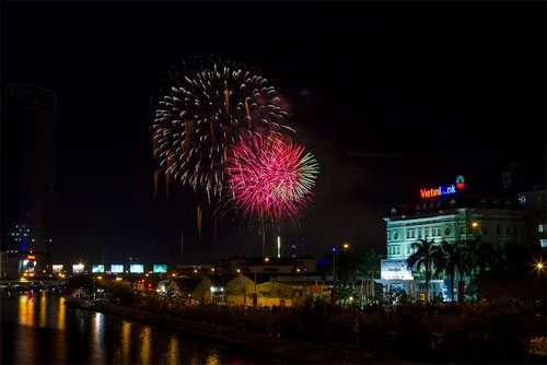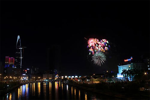 | Những màn pháo hoa lung linh tại khu vực hầm vượt sông Sài Gòn. |