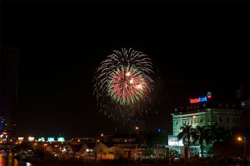 | Đông đảo người dân thành phố xem pháo hoa. |