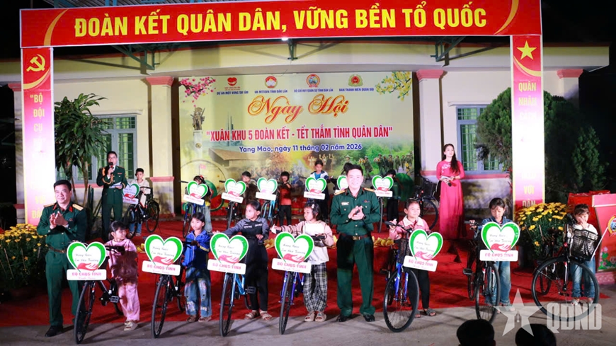 Chương trình “Xuân Khu 5 đoàn kết - Tết thắm tình quân dân” đã dành hơn 1.100 suất quà tặng bà con, 15 chiếc xe đạp tặng cho học sinh nghèo với tổng số tiền hơn 1,4 tỷ đồng và hàng loạt hoạt động ý nghĩa khác. Bộ CHQS tỉnh Đắk Lắk còn phối hợp cùng các đơn vị phát 2.000 tờ rơi tuyên truyền pháp luật, cắt tóc miễn phí giúp hơn 200 trẻ em và người dân; tổ chức dâng hoa, viếng Bia tưởng niệm các liệt sĩ xã Yang Mao; thăm, tặng quà cấp ủy, chính quyền, các cơ quan, đơn vị, ban, ngành, đoàn thể xã.
