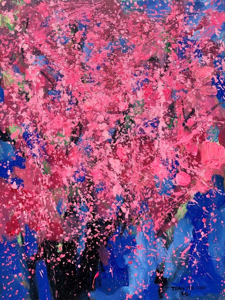| Hoa mai anh đào. Tranh sơn dầu của TRẦN THẾ VĨNH |