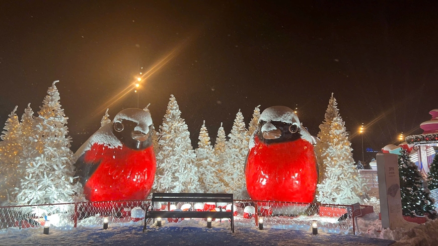 | Giữa rừng thông phủ tuyết trắng xóa, những sắc đỏ rực rỡ như nhịp tim ấm áp của thành phố trong ngày năm mới. Ảnh: XUÂN HƯNG |