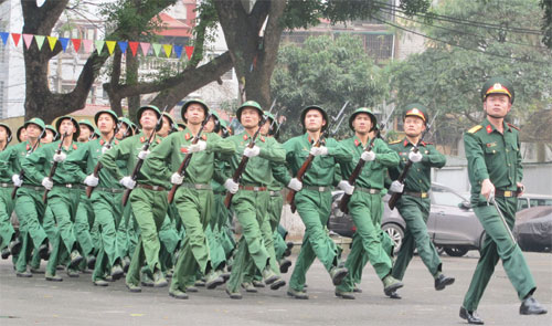 | Bộ đội Đoàn Nghi lễ Quân đội (Bộ Tổng tham mưu) luyện tập đội ngũ. Ảnh: Thu Thảo. |