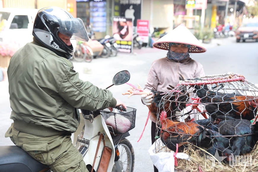 Con gà được người dân nuôi trong vườn đem bán ở chợ phiên.