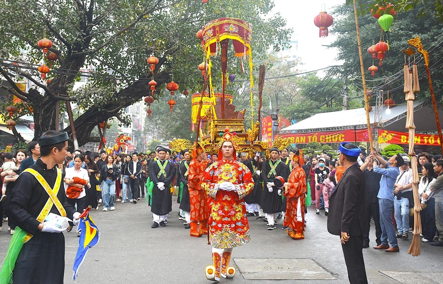 Nghi lễ rước oai linh đức thánh Phùng Hưng tại lễ hội làng Triều Khúc.