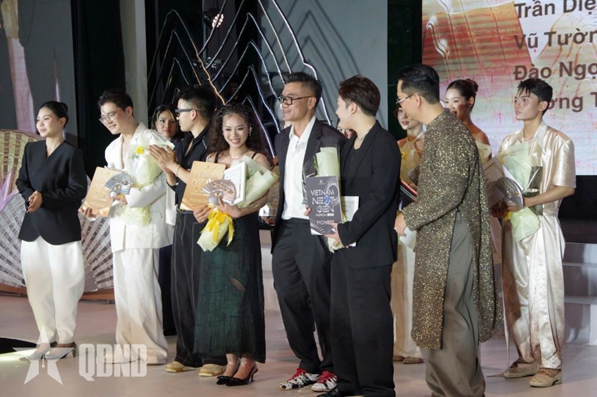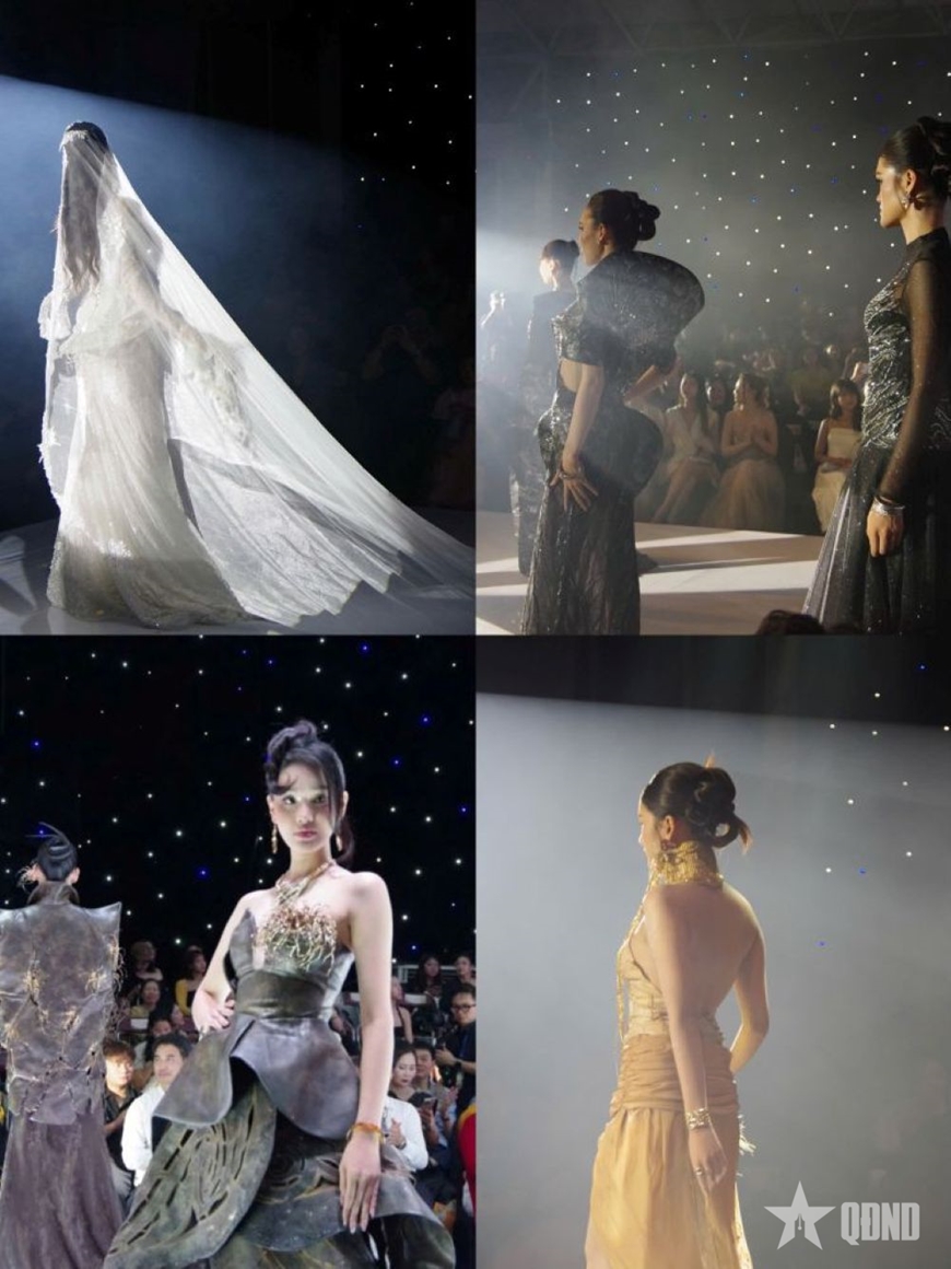 Lấy cảm hứng từ hình tượng quạt tre và trống đồng, show diễn là sự giao thoa hài hòa giữa văn hóa truyền thống và hiện đại. Nếu quạt tre đại diện cho ngành thời trang - gần gũi, linh hoạt và giàu tính ứng dụng, thì trống đồng gợi nhắc đến chiều sâu lịch sử và bản sắc văn hóa dân tộc. Mỗi BST vì thế trở thành một lát cắt đương đại, thể hiện tinh thần sáng tạo và dấu ấn riêng của các nhà thiết kế trẻ.