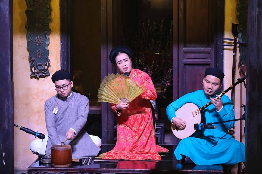 | Trình diễn nghệ thuật truyền thống phục vụ du khách tại khu phố cổ Hà Nội. Ảnh: THANH TÙNG |