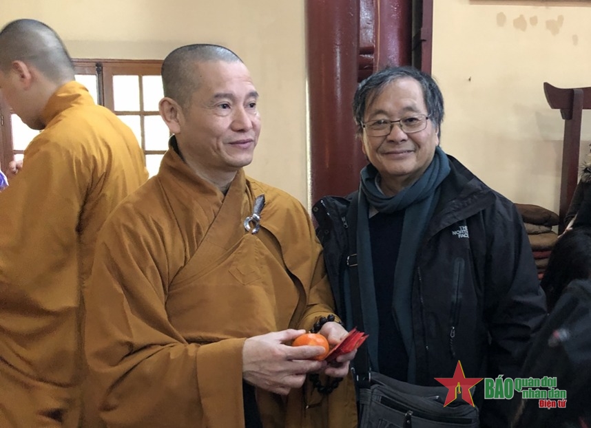 | Tác giả (bên phải) đi lễ chùa cầu may đầu năm mới. |