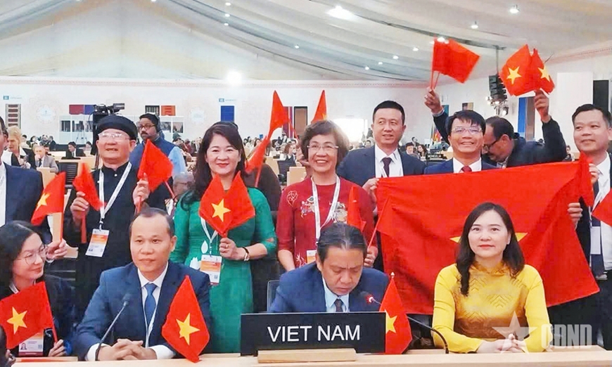| Đoàn Việt Nam tại Kỳ họp lần thứ 20 của Ủy ban Liên chính phủ Công ước 2003 về bảo vệ di sản văn hóa phi vật thể của UNESCO, tổ chức tại New Delhi (Ấn Độ). |