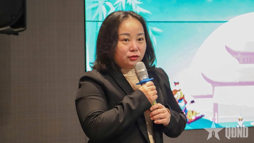 | Bà Nguyễn Thị Ngọc Hòa, Giám đốc Trung tâm Điều phối các Hoạt động Sáng tạo Hà Nội tại triển lãm. |