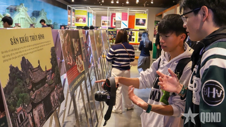 Song song với trải nghiệm công nghệ, không gian triển lãm còn mở ra một không gian rối nước thu nhỏ với hệ thống hiện vật, đạo cụ và tư liệu được Nhà hát Múa rối Thăng Long hỗ trợ cung cấp. Những con rối, mô hình thủy đình và bộ ảnh tư liệu được sắp xếp theo từng chủ đề, dẫn dắt người xem đi qua hành trình hình thành, phát triển của nghệ thuật rối nước qua các thời kỳ. Sự hòa quyện giữa chất liệu truyền thống và công nghệ hiện đại tạo nên một không gian tiếp cận đa chiều: Dễ hiểu, nhẹ nhàng nhưng không kém phần chiều sâu.