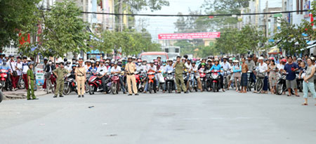 Đông đảo người dân cổ vũ cho Cuộc đua xe đạp “Xuyên Việt-2014, Cúp Quốc phòng Việt Nam”. Ảnh: Vũ Quang Thái.