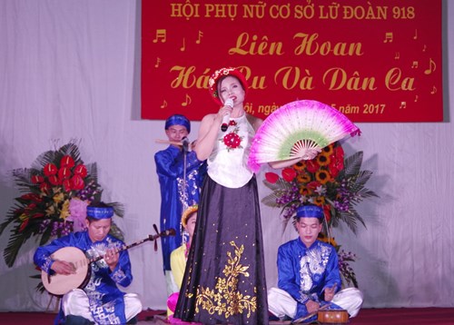 Bên cạnh những điệu hát ru, những bài dân ca quen thuộc, đội Chi hội phụ nữ Tiểu đoàn Thông tin ra-đa còn có tiết mục tự biên theo điệu "Cò lả" với tựa đề "Chuyện kể cô gái thông tin" có nét duyên, thu hút người nghe. Những lời ca nói về công việc hằng ngày của đơn vị, tuy dung dị, mộc mạc nhưng giàu ý nghĩa. Đại úy QNCN Nguyễn Thị Vũ, nhân viên báo vụ, tâm sự: "Đã hơn 20 năm gắn bó bên máy vô tuyến điện, những đêm khuya trực tại đơn vị, có lúc tôi muốn cất lên khúc hát ru con nhưng đành lỗi hẹn. Tình cảm cứ dồn nén bao lâu để bây giờ tôi mới được ngân lên khúc hát dân ca ngọt ngào sâu lắng trong buổi liên hoan này".