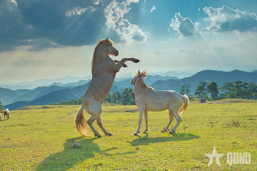 Du khách đến Khau Sao những ngày Xuân Bính Ngọ sẽ được chiêm ngưỡng đàn ngựa bạch thong dong trên đồng cỏ xanh, nghe tiếng vó ngựa vang vọng giữa núi rừng.
