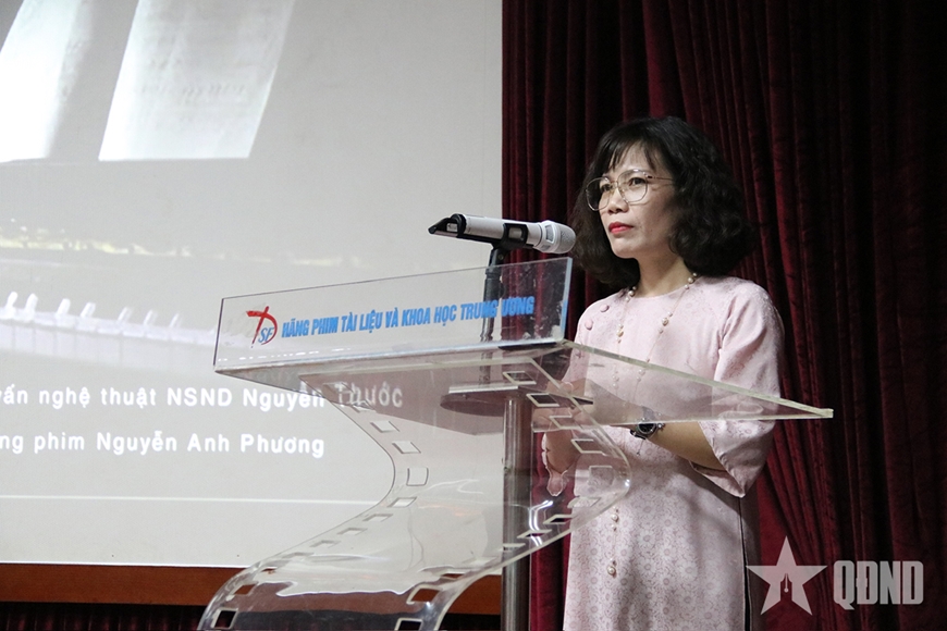 | Đạo diễn Đặng Linh chia sẻ với khán giả trước buổi công chiếu phim. |