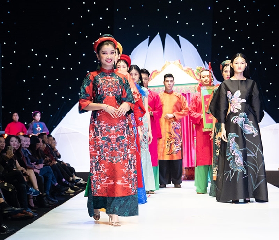 Nhà thiết kế Vũ Lan Anh chia sẻ: Tôi muốn đưa hình ảnh “đám cưới chuột” vào bộ sưu tập áo dài để tôn vinh trang phục truyền thống của người phụ nữ Việt Nam. Bộ sưu tập “Nhật Vượng Niên Hoa” là sự kết hợp họa tiết dân gian được chuyển thể tông màu tươi mới, bố cục tôn dáng người mặc, kết hợp những chi tiết thêu tay đính kết, đắp nổi thủ công rất công phu sẽ tôn vinh được nét đẹp của người phụ nữ Việt Nam từ xưa đến nay.
