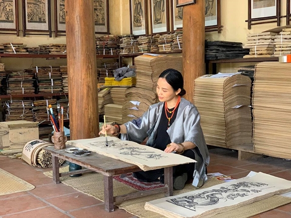 Nhà thiết kế Vũ Lan Anh "thực mục sở thị" dòng tranh dân gian Đông Hồ. |