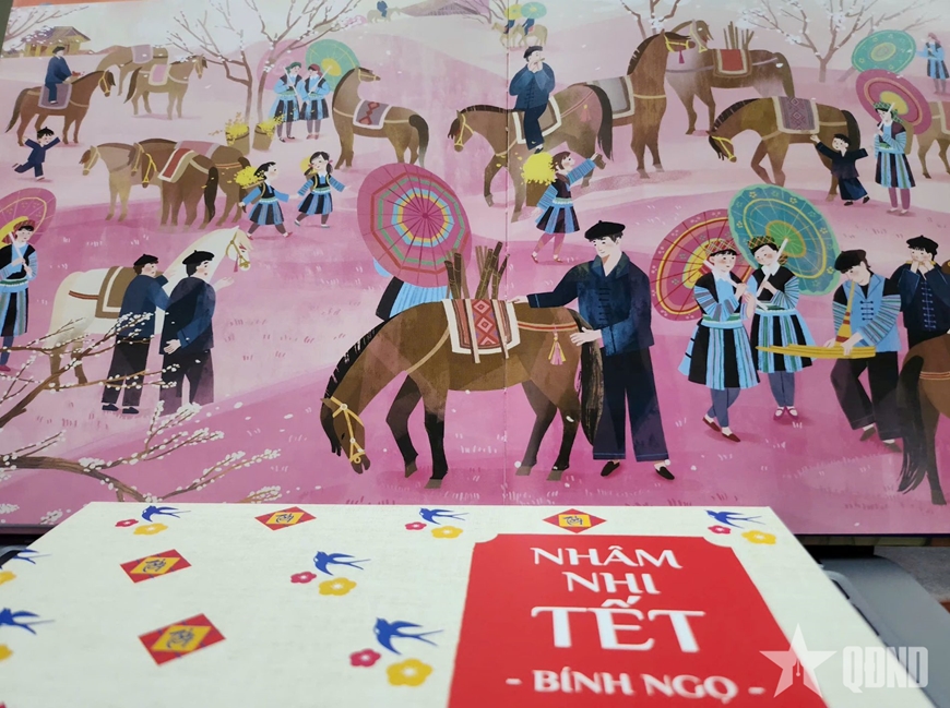 Linh vật của năm 2026 được thể hiện sinh động từ văn chương, hội họa cho đến vốn cổ của cha ông. Cầm trên tay cuốn sách “Nhâm nhi Tết Bính Ngọ”, độc giả nhỏ tuổi được phiêu lưu cùng “Chú ngựa có cánh” của Nguyễn Dương Quỳnh, hay thích thú với truyện tranh “Bánh Tết của Ngựa Bơ” do họa sĩ Múc thể hiện.