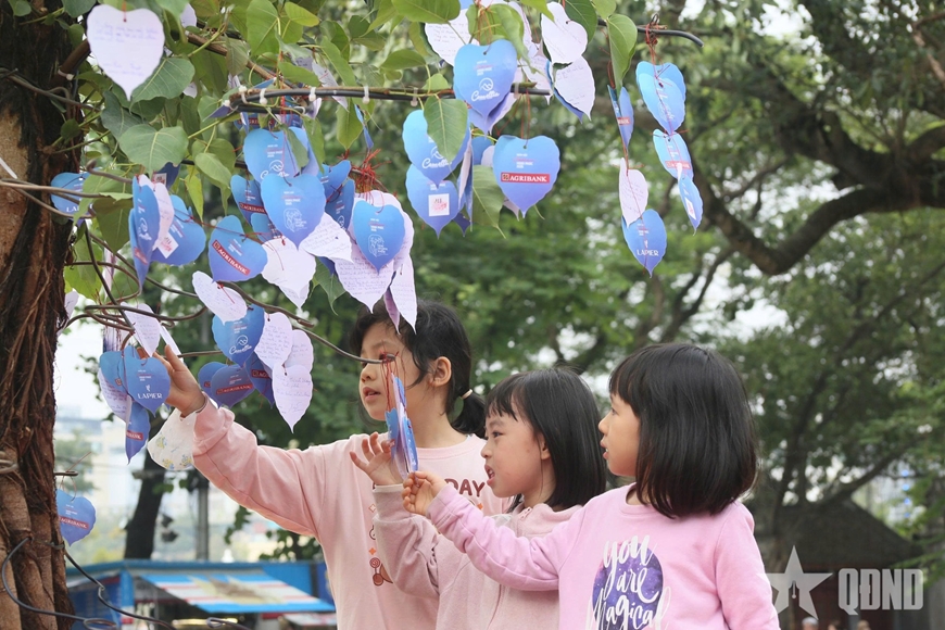 Trong không gian ấy, hạnh phúc không đến từ điều lớn lao, mà từ khoảnh khắc bình dị nhất qua những cái nắm tay, những lời chia sẻ, chúc phúc treo lên cành cây. Hạnh phúc nảy mầm từ những điều giản dị, rồi lan thành hơi ấm phủ kín cả ngày hội. Chị Lê Thúy Hằng, người đưa ra ý tưởng “Cây Hạnh phúc”, chia sẻ: “Đây là nơi mọi người gửi gắm ước nguyện và thông điệp yêu thương. “Cây Hạnh phúc” tượng trưng cho lời cầu chúc quốc thái dân an, cho mái ấm bình yên, và cho nét đẹp văn hóa cộng đồng được dệt nên từ những trái tim biết yêu thương, chia sẻ”.
