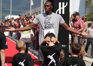| Bolt tham gia hoạt động từ thiện vì trẻ em tại Thụy Sĩ vào tháng 7 vừa qua - Ảnh: Reuters |