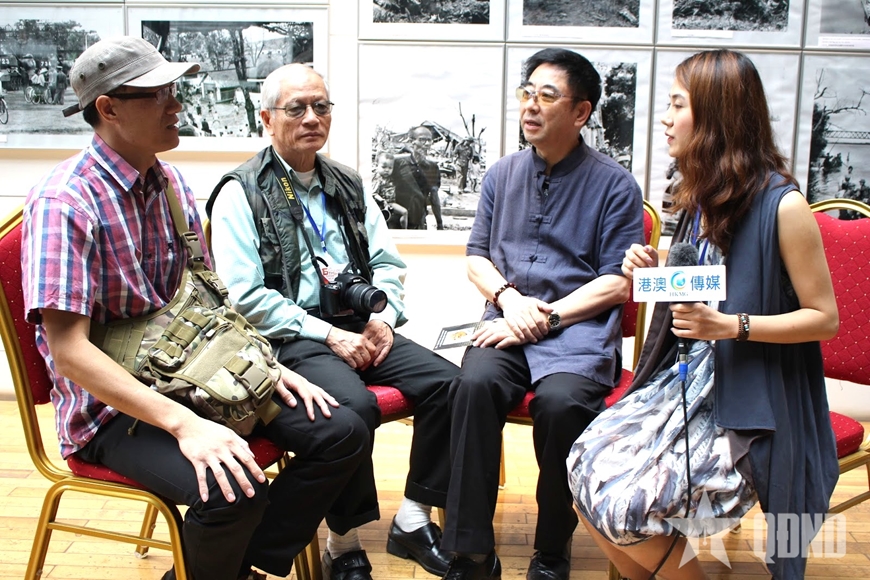Nghệ sĩ nhiếp ảnh Đoàn Công Tính (thứ hai, từ trái sang) trong một lần trao đổi với phóng viên nước ngoài. Ảnh: HKMG