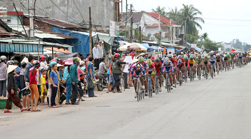 Đồng bào Quảng Nam cổ vũ nhiệt tình cho các cua-rơ khi đi qua huyện Điện Bàn, tỉnh Quảng Nam, nơi yên nghỉ của mẹ Thứ - Bà mẹ Việt Nam anh hùng nổi tiếng.