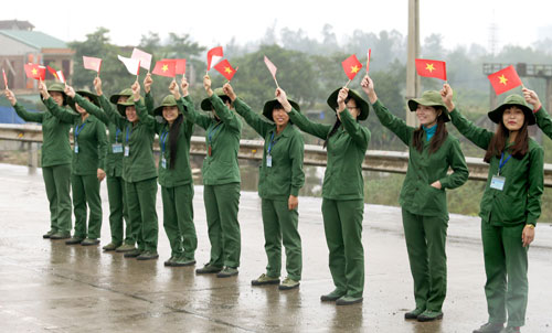 Sinh viên Đại học Vinh chào mừng đoàn đua đi qua thành phố Vinh.