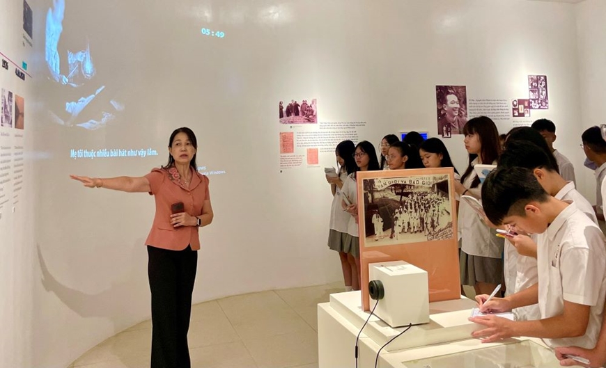 Khi tham quan Bảo tàng, tôi gặp cô và trò Lớp 8A1, Trường THCS Edison An Khánh (xã An Khánh, TP Hà Nội) đến đây học tiết học ngoài giờ lên lớp. Trên tay mỗi em học sinh là một cuốn sổ nhỏ, trang giấy kín những dòng chữ ghi vội cảm nhận của bản thân. Em Ngô Hải Phong chia sẻ: “Em rất xúc động khi được tìm hiểu về cuộc đời và sự nghiệp của nhà thơ Tố Hữu, người đã cống hiến trọn đời cho cách mạng và thơ ca Việt Nam. Nhờ những sáng tác của ông, chúng em như được hòa mình vào một thời kỳ lịch sử hào hùng của dân tộc”.