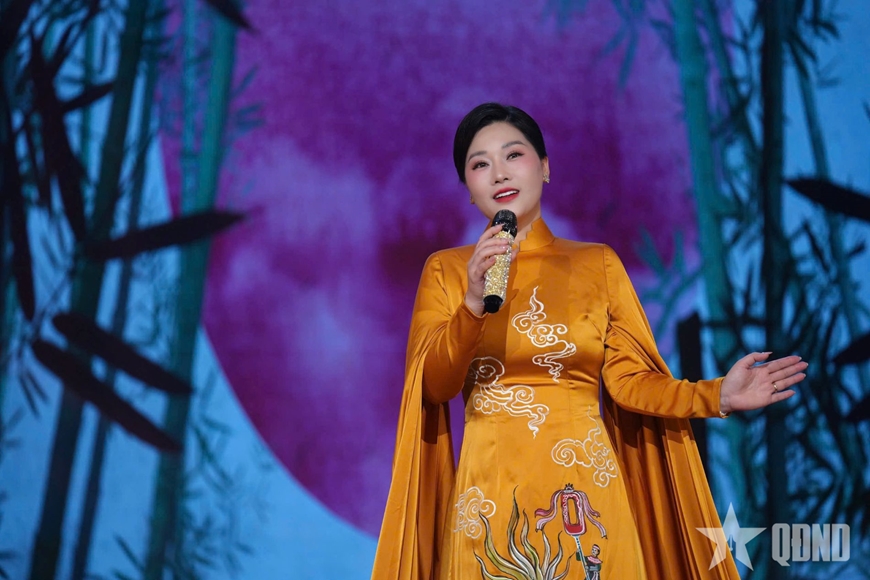 Thượng tá, NSƯT Hương Giang trong dự án âm nhạc “Vang mãi bản hùng ca dân tộc”.