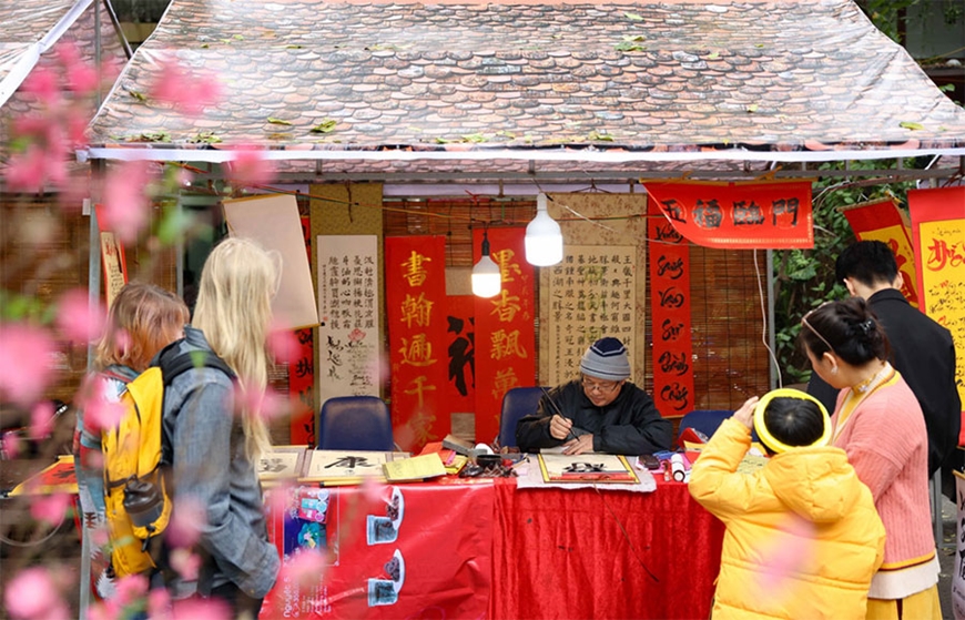 | Không gian "Tết phố" tại phố bích họa Phùng Hưng. Ảnh: Vietnam+ |