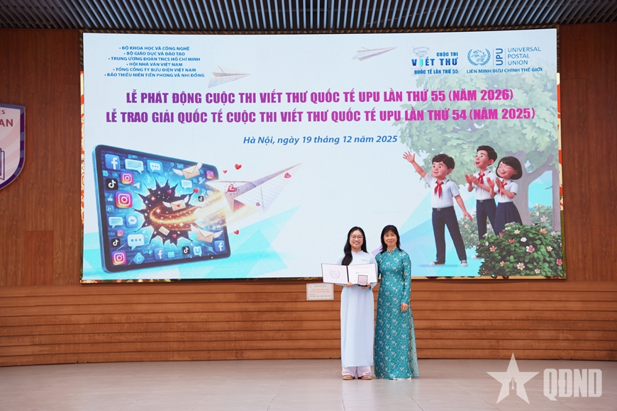 Trong khuôn khổ lễ phát động, Ban tổ chức trao giải Nhì quốc tế Cuộc thi Viết thư quốc tế UPU lần thứ 54 (năm 2025) tặng em Phạm Đoàn Minh Khuê, học sinh lớp 10C2, Trường THPT Chuyên Lê Quý Đôn, quận Sơn Trà, thành phố Đà Nẵng.