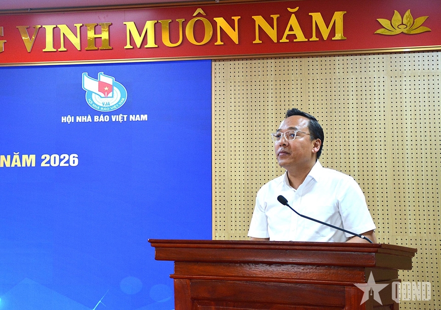 | Nhà báo Nguyễn Đức Lợi, Phó chủ tịch Thường trực Hội Nhà báo Việt Nam phát biểu. |