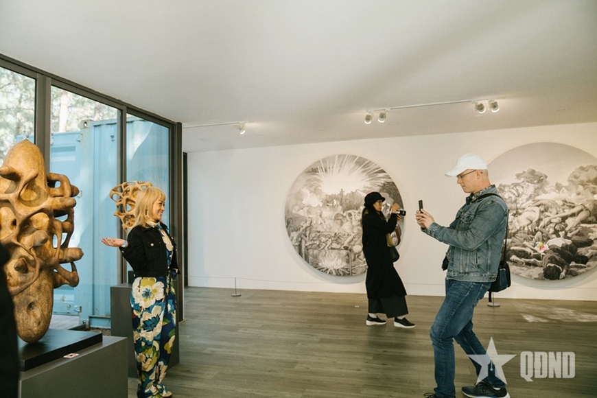 | Khách tham quan bên các tác phẩm tại Bảo tàng Nghệ thuật đương đại Flamingo. |