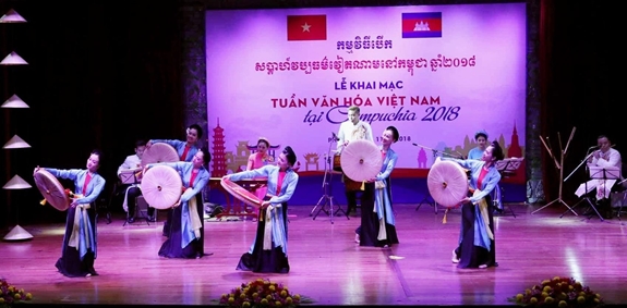Quảng bá văn hóa Việt trong Tuần văn hóa Việt Nam tại Campuchia năm 2018. Ảnh: NHẤT HOÀNG. |