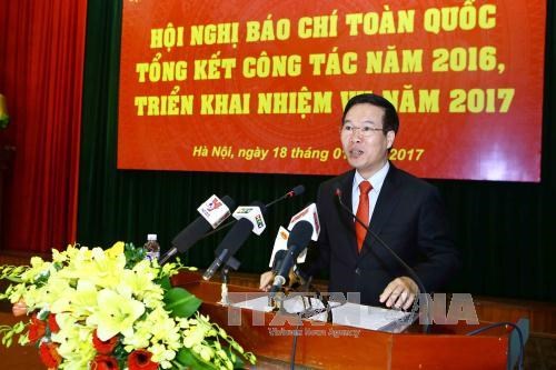 Phát biểu kết luận hội nghị, Trưởng ban Tuyên giáo Trung ương Võ Văn Thưởng đã biểu dương những thành tựu của báo giới trong năm 2016 và nhấn mạnh một số nhiệm vụ trọng tâm cần làm trong năm 2017: Tiếp tục tuyên truyền, khích lệ để cả hệ thống chính trị và nhân dân thực hiện thắng lợi Nghị quyết Đại hội XII của Đảng và các nghị quyết của Trung ương Đảng; cổ vũ, động viên điển hình tiên tiến; phát huy vai trò của báo chí trong đấu tranh chống tiêu cực, chống các biểu hiện suy thoái đạo đức lối sống, tạo diễn đàn để các tầng lớp nhân dân đóng góp ý kiến xây dựng, phát triển kinh tế-xã hội. Các cơ quan quản lý cần phát huy kết quả trong chỉ đạo thông tin, có cơ chế phản hồi thông tin cho báo chí tốt hơn. Công tác quản lý cũng cần tiếp tục quan tâm một số vấn đề như quy hoạch báo chí, vấn đề kinh tế truyền thông, kinh tế báo chí. Cần quan tâm hơn nữa đến công tác đào tạo, bồi dưỡng, nâng cao phẩm chất, trình độ chuyên môn của người làm báo. Triển khai thực hiện quy định đạo đức nghề nghiệp của Hội Nhà báo Việt Nam.